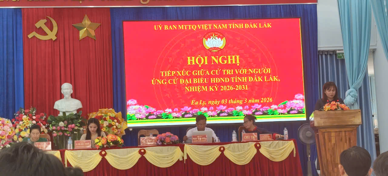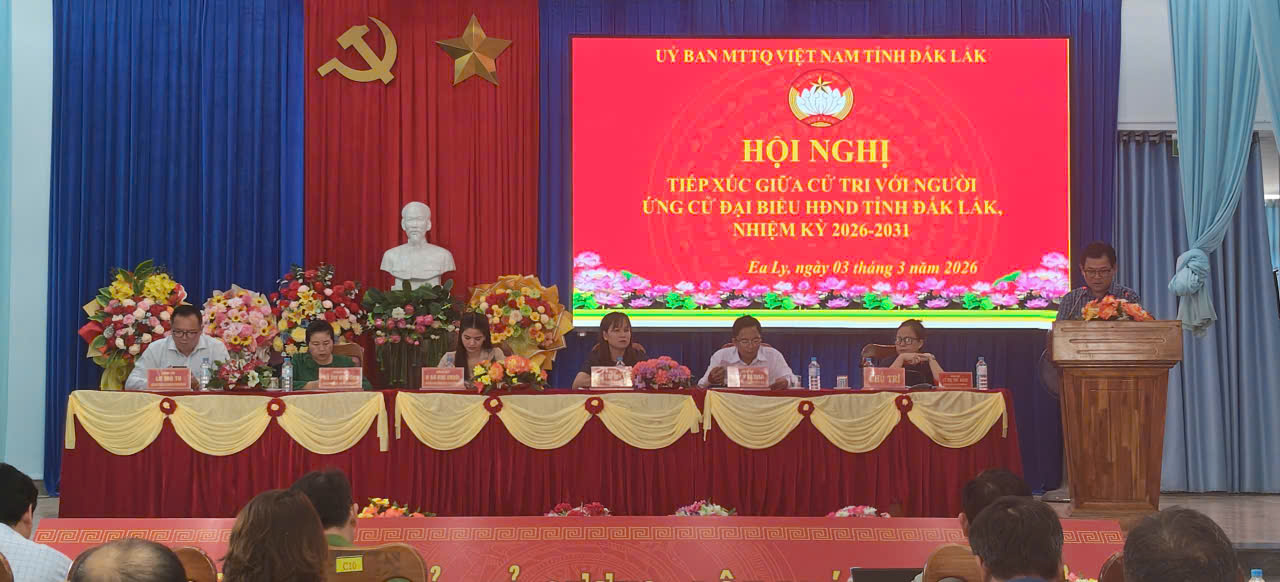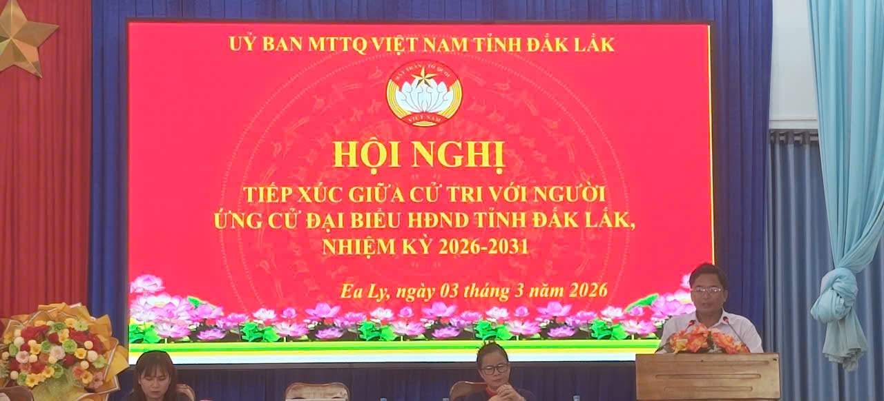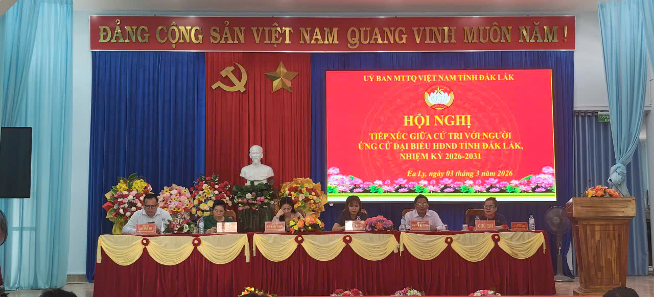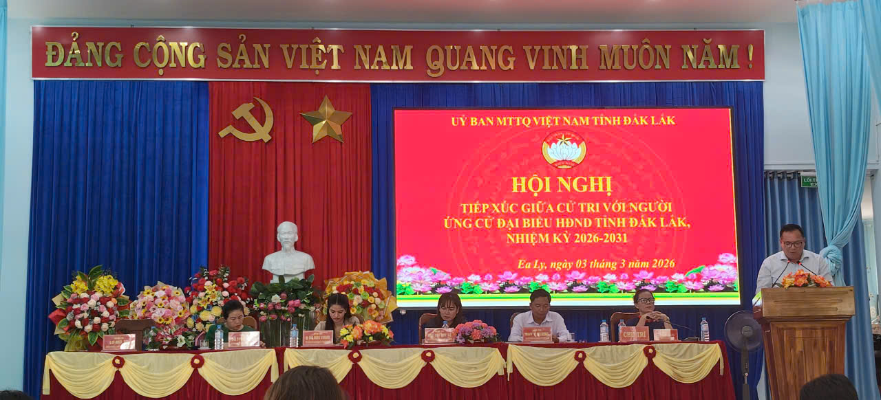 Chiều ngày 03/3/2026 tại hội trường UBND xã Ea Ly Ủy ban MTTQ Việt Nam Tỉnh tổ chức hội nghị tiếp xúc cử tri với người ứng cử Đại biểu HĐND tỉnh Đắk lắk nhiệm kỳ 2026-2031