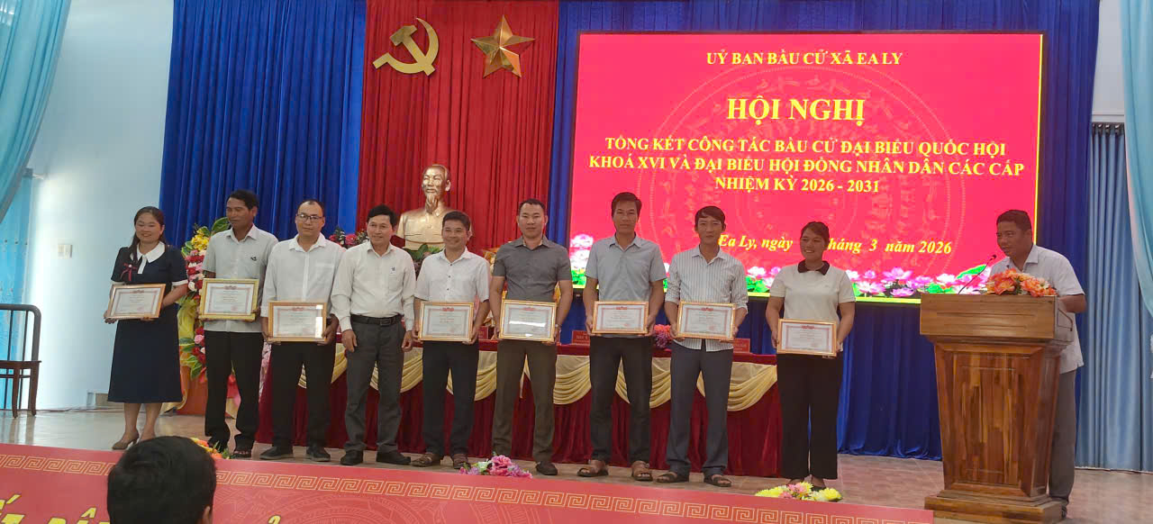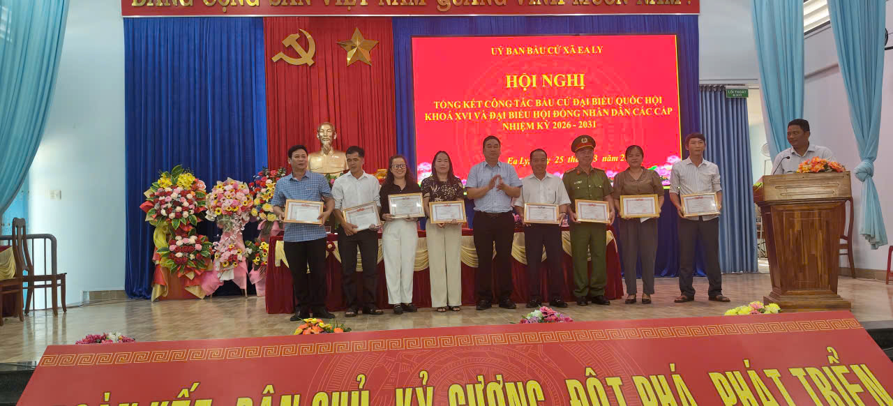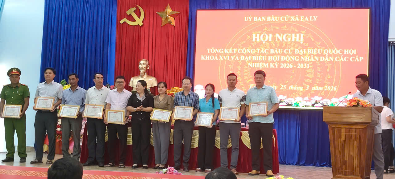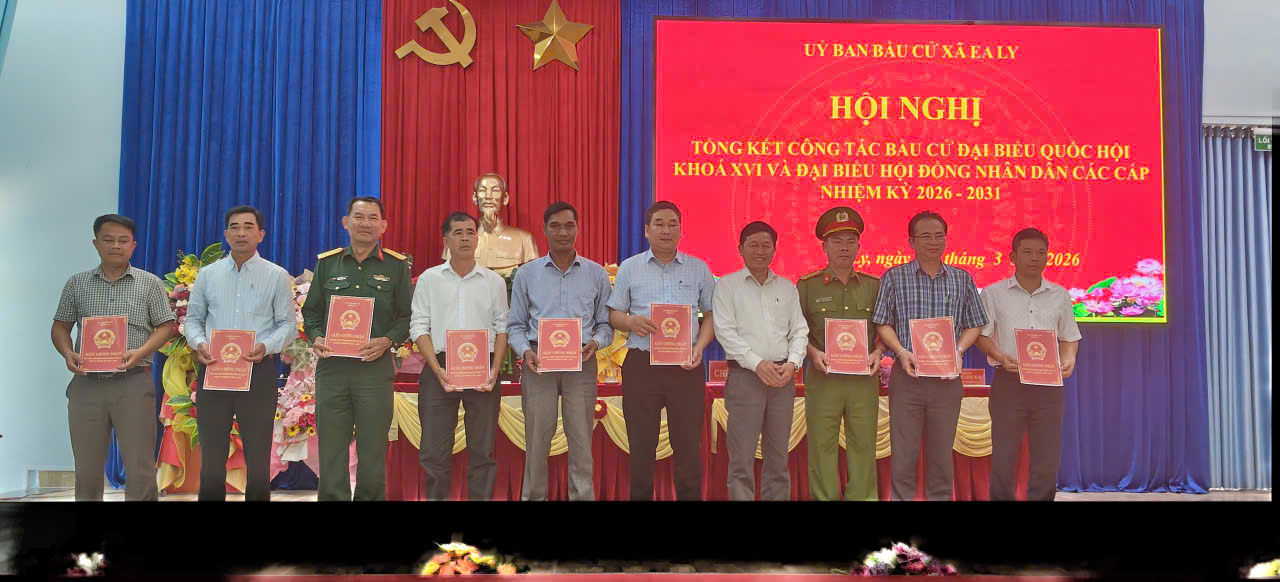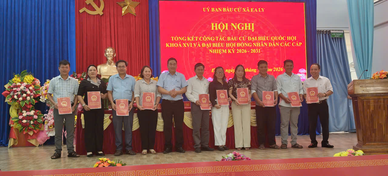 Chiều ngày 25/3/2026, Ủy ban bầu cử xã Ea Ly tổ chức Hội nghị tổng kết công tác bầu cử đại biểu Quốc hội khóa XVI và đại biểu Hội đồng nhân dân các cấp nhiệm kỳ 2026 – 2031.