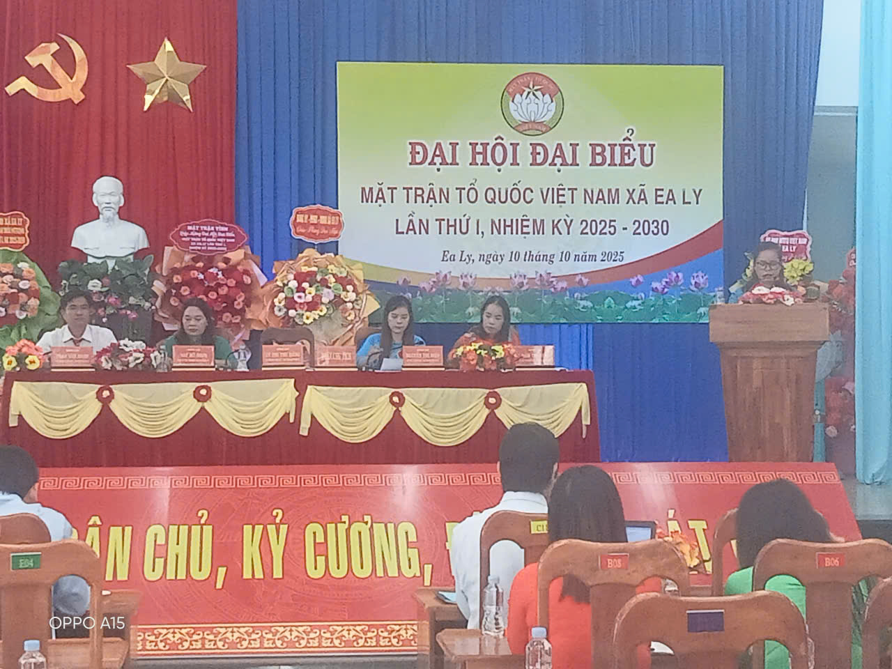 Sáng ngày 10/10/2025 tại hội trường UBND xã Ea Ly tổ chức Đại hội đại biểu UBMTTQVN xã Ea Ly lần thứ I, nhiệm kỳ 2025-2030