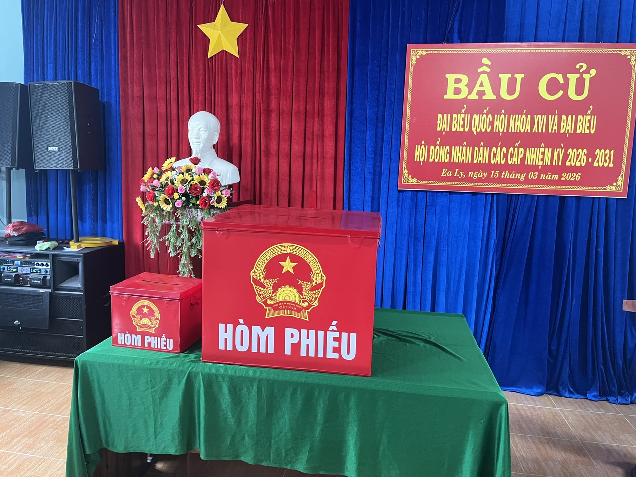 Trong không khí trang nghiêm và phấn khởi ngày bầy cử Đại biểu Quốc hội khóa XVI và Đại biểu Hội đồng nhân dân các cấp nhiệm kỳ 2026-2031. Đúng 6 giờ 30 phút ngày 15/3/2026 Các khu cực bỏ phiếu trên địa bàn xã Ea Ly đã đồng loạt tổ chức khai mạc bầu cử, với sự đông đảo của các đồng chí lãnh đạo của các ban, ngành và cử tri đã có mặt các khu vực bỏ phiếu để thực hiện quyền và nghĩa vụ công dân của mình.