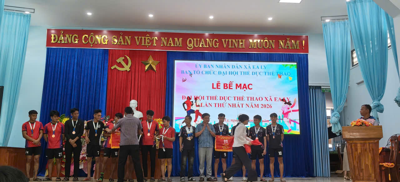 TỪ NGÀY 22/025/ ĐẾN 24/02/2026 BTC ĐẠI HỘI TDTT XÃ EA LY TỔ CHỨC ĐẠI HỘI TDTT XÃ EA LYLẦN THỨ NHẤT NĂM 2026 VỚI SỰ THAM GIA CỦA 12 THUÔN BUÔN TRÊN ĐỊA BÀN XÃ. BTC ĐÃ TRAO CÁC GIẢI CÁ NHÂN VÀ TẬP THỂ CHO CÁC ĐƠN VỊ THAM GIA VÀ TRAO GIẢI NHẤT TOÀN ĐOÀN THUỘC VỀ ĐƠN VỊ: THÔN TÂN AN, GIẢI NHÌ; THÔN 2/4 VÀ GIẢI BA: THÔN TÂN YÊN